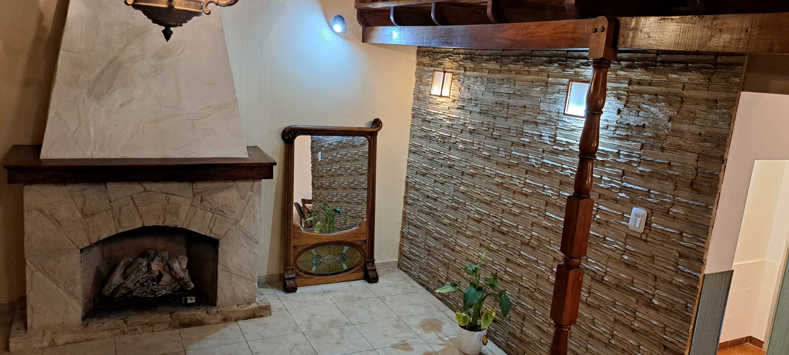 Pb: living con hogar paredes con revestimiento en piedras, un dormitorio con placard embutido, cocina-comedor con muebles altos y bajo mesada, barra desayunador en madera, ante baño y baño completamente instalado ,patio con parrilla e ingreso para auto.