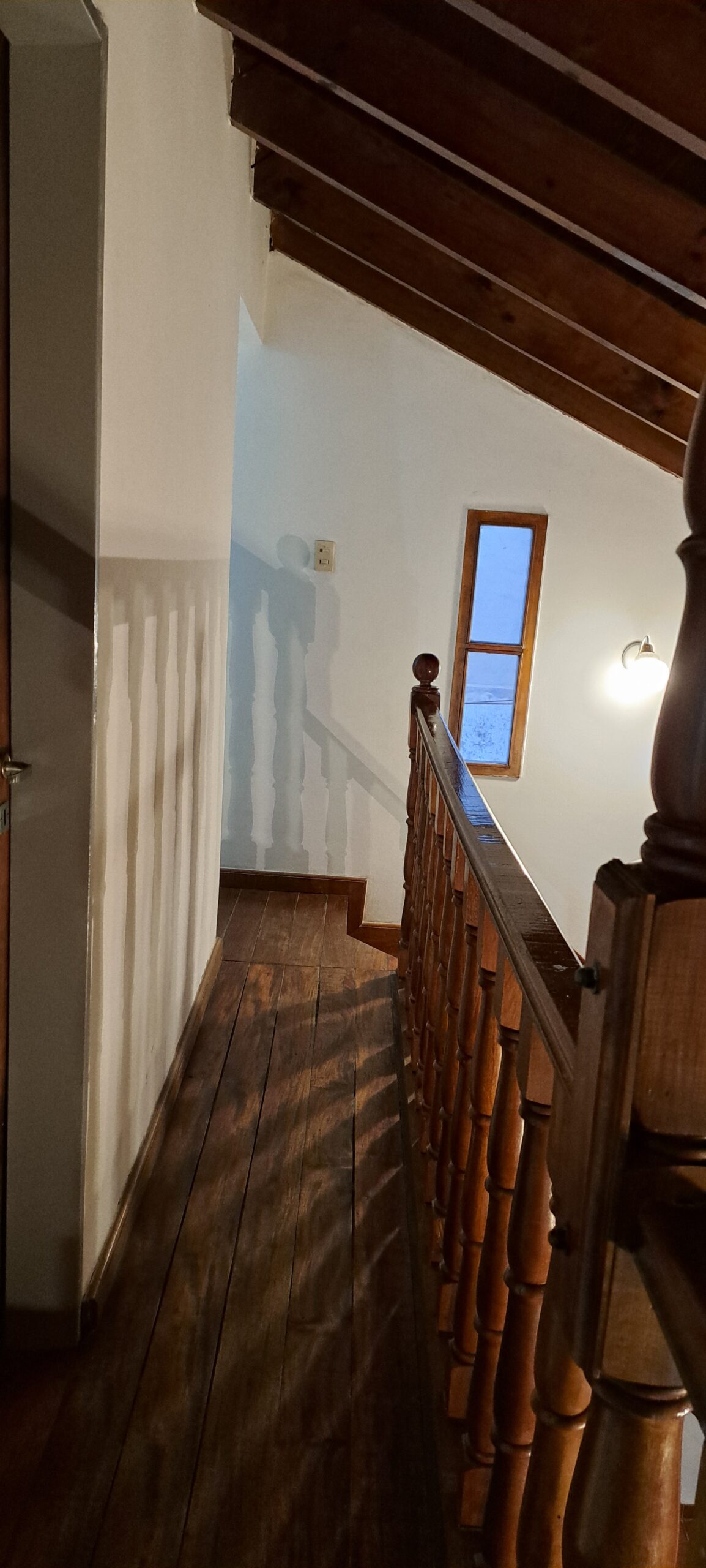 PA: Escalera en madera torneada lustrada, dos dormitorios ambos con placard embutió y aire acondicionado, patio terraza y lavadero.